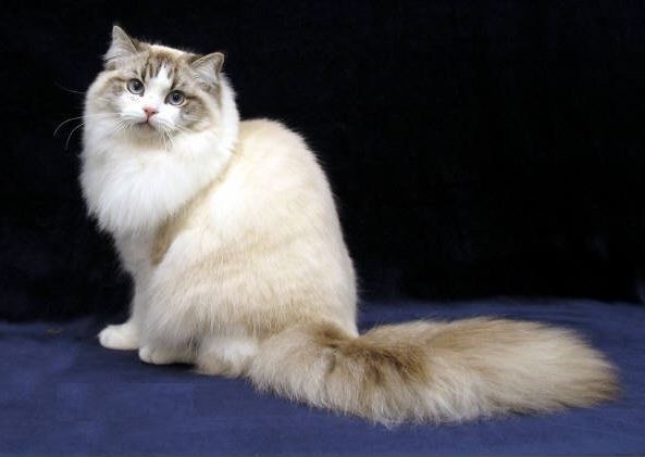 라가머핀은 래그돌 고양이의 변종이며 1994년에 별도의 품종으로 확정되었다.