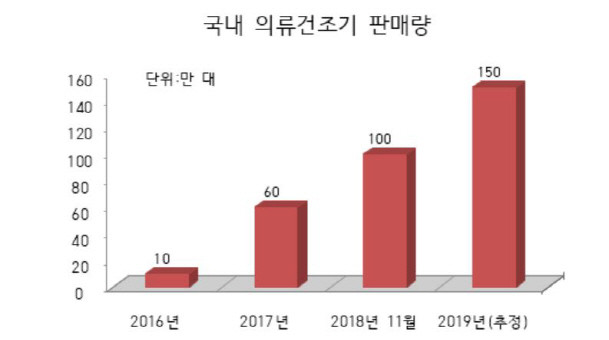 9일 업계에 따르면 올해 11월까지 국내 건조기 판매량은 100만대를 넘어섰다.