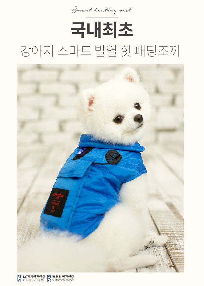 강아지 발열조끼는 평창에서 개최된 동계 패럴림픽 당시 방한용품을 협찬한 업체에서 제조한 제품이다. KC안전인증과 KES전자파 적합성을 모두 통과해 강아지에게도 안전하게 사용할 수 있다.