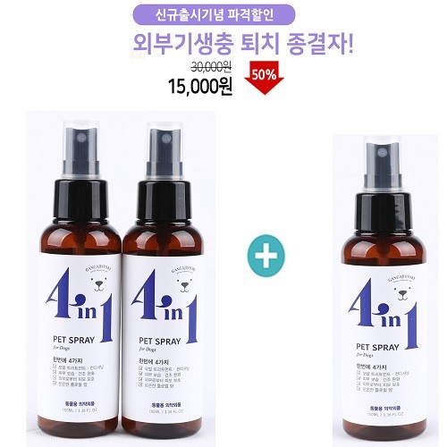 강아지스토리는 ‘4IN1(포인원) 모이스처 미스트’ 신제품 출시기념 50% 할인행사와 함께 2+1 행사를 기획하여 현재 진행 중이다.