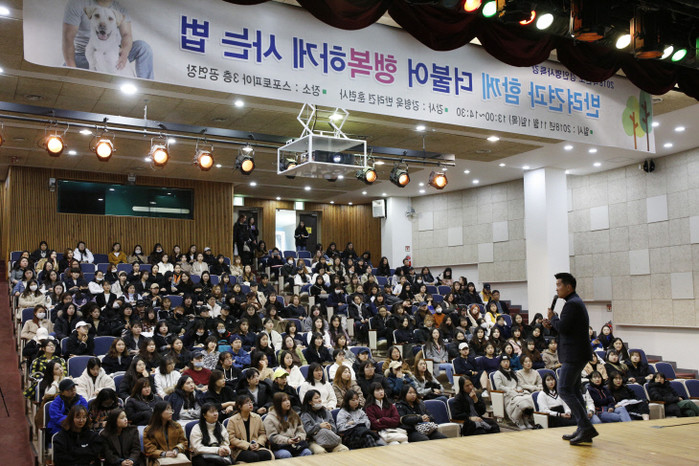 반려견에 대한 관심이 많은 가운에 공연장은 300여명의 학생들로 꽉 찼으며, 강형욱대표는 '반려견과 더불어 행복하게 사는 법'이라는 주제로 개가 싫어하는 다섯가지, 개와 친해지는 다섯 가지의 내용으로 강의를 진행했으며 강의 후에 질문을 받는 순서로 진행했다.