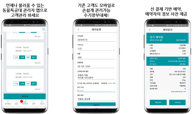 애견미용사 관리앱 동물특공대는 ▲클라우드 기반의 기존고객관리 ▲선결제 기반의 신규고객 예약접수 ▲예약완료 시 무료 문자 전송 ▲월간 매출정보 확인 등의 서비스를 제공한다.