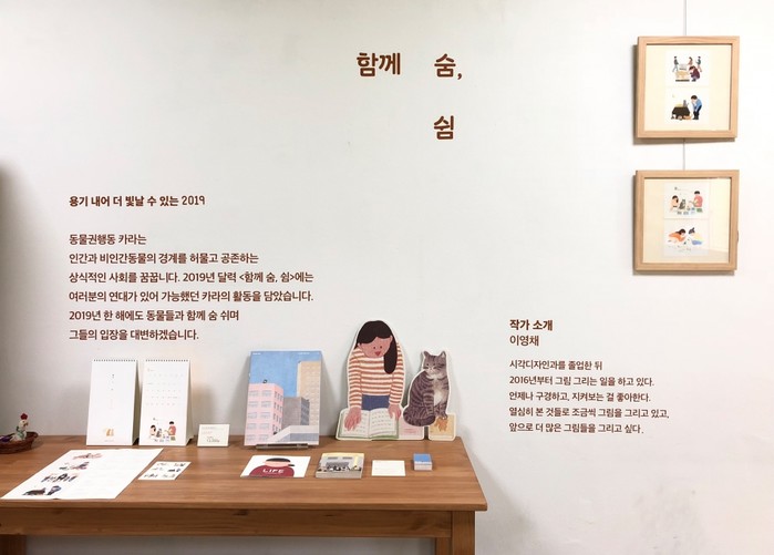 동물권행동 카라(대표 임순례)가 2019년 카라 달력 '함께 숨, 쉼'의 일러스트 원화 전시를 개최한다고 8일 밝혔다.