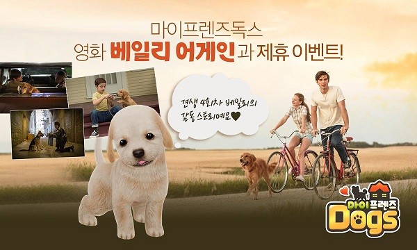 게임펍은 모바일 소셜 네트워크 게임(SNG) ‘마이프렌즈:Dogs’에서 오는 22일 개봉을 앞둔 영화 ‘베일리 어게인’과 제휴 이벤트를 실시한다.