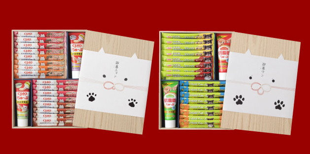 일본에서는 지난 8일, 반려묘와 반려견을 위한 연말 선물 판매가 시작됐다. 연말 선물이기 때문에 근사한 나무 상자에 담겨 있는데 내용물은 반려동물들이 좋아할 만한 음식이 담겨 있다.