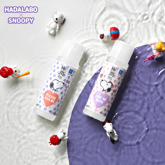 하다라보는 브랜드 시그니처 아이템인 ‘고쿠쥰 로션’에 캐릭터 스누피를 제품 패키지에 입혀 두 가지 디자인으로 준비했다. ‘스누피’와 ‘벨’ 캐릭터를 각각 담은 ‘고쿠쥰 로션’ 2종을 모으면 서로에게 키스를 보내는 스누피 커플이 완성된다.