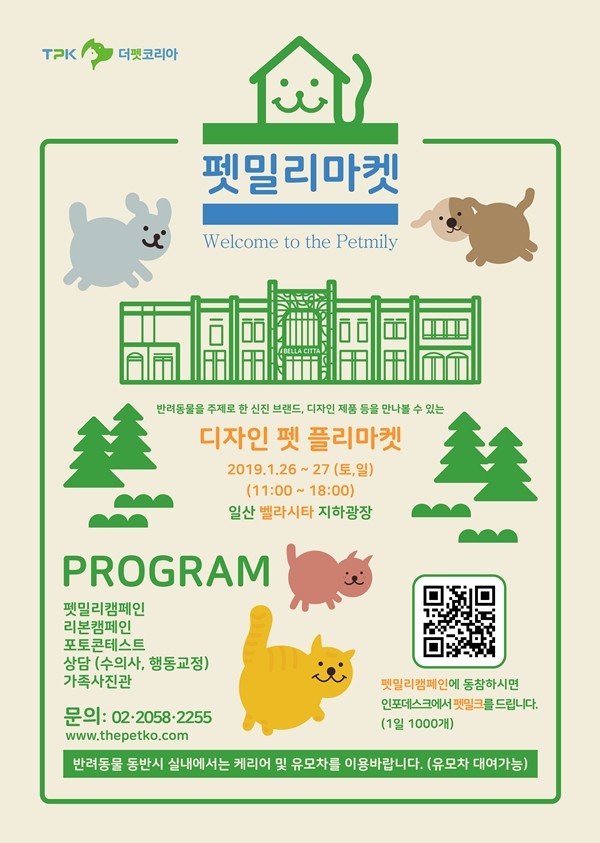 더펫코리아는 2019년 1월 26~27일 (토·일)에 일산 벨라시타 지하광장에서 반려동물 플리마켓 '펫밀리마켓'을 진행한다.