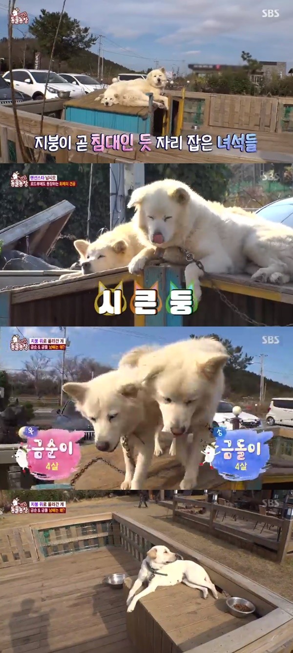 견주는 “저기가 그냥 편하고 좋은 것 같다. 집 안에 잘 안 들어온다”고 말했다. 견주가 운영하는 식당은 지붕위 견주들로 인기를 얻었다. 견주는 “둘은 남매다. 금순이, 금돌이로 4살됐다”고 말했다.