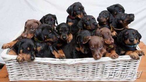 도베르만이 출산한 새끼 14마리[사진=메트로]