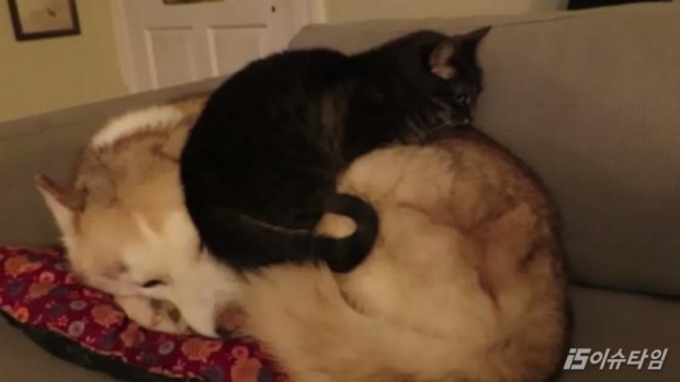 (이슈타임)백재욱 기자=고양이와 강아지는 적이라는 통념을 깨부수는 영상이 공개돼 이목을 끌고 있다. 지난달 16일 유튜브에 커다란 강아지와 그를 침대 삼아 잠을 청하는 사이좋은 고양이의 모습이 올라왔다. 제법 거대한 강아지는 소파에 누워 몸을 웅크린 채 꾸벅꾸벅 졸고 있다. 졸린 듯 게슴츠레 실눈을 뜬 강아지 곁으로 고양이 한 마리가 폴짝 뛰어오른다. 고양이는 강아지에게 정성스레 안마를 해주는가 싶더니 이내 강아지의 몸에 누울 준비를 한다. 자리를 잡고 누운 고양이 엉덩이가 강아지의 얼굴을 찌그러뜨리지만 강아지는 개의치 않고 오히려 편안해 한다. 고양이의 엉덩이가 푹신하고 좋았던지 강아지는 살며시 눈까지 감아버린다. 서로에게 포근한 쿠션 같은 존재가 되어주는 모습에 보는 이들의 마음까지 훈훈해진다.