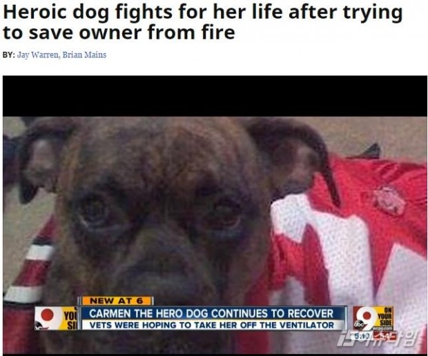 (이슈타임)백재욱 기자=화재 속에서 주인을 지키기 위한 영웅같은 반려견의 사연이 전해져 감동을 주고 있다. 지난 8일(현지 시간) 영국 일간 메트로에 따르면 화재로 인한 연기와 불길 속에서도 반려견 카르멘(Carmen)은 주인 벤 레드포드(Ben Ledford)를 보호하기 위해 그의 곁을 끝까지 지켰다. 화재는 미국 오하이오(Ohio) 신시내티(Cincinnati)에 있는 벤의 자택에서 발생했다. 집은 순식간에 화염에 휩싸였고 불길을 뚫고 탈출하고자 했던 것으로 보이는 벤과 카르멘은 계단에서 발견됐다. 이웃의 신고로 도착한 소방관은 카르멘이 주인 벤의 얼굴을 온몸으로 덮고 있는 모습을 목격하게 됐다. 카르멘이 벤을 살리기 위해 뜨거운 열기와 짙은 연기를 견뎌내며 그를 보호한 것이다. 하지만 안타깝게도 벤은 병원으로 이송된 지 얼마 지나지 않아 사망하고 말았다. 카르멘 역시 연기와 열에 폐가 심각하게 손상돼 수의사의 보살핌 아래서 인공호흡기로 겨우 숨을 이어가고 있다. 수의사 마를 앤더슨(Marlo Anderson)은 카르멘은 치명상을 입고 심각한 상태로 병원에 도착했지만 지금은 건강을 회복하고 있다 며 우리는 곧 카르멘이 인공호흡기를 제거한 뒤에도 숨을 쉴 수 있을 거라고 생각한다 고 말했다. 비록 벤은 세상을 떠났지만 주인을 보호하기 위해 끝까지 곁을 지킨 반려견 카르멘의 이야기는 많은 이들을 감동시키기에 충분했다.