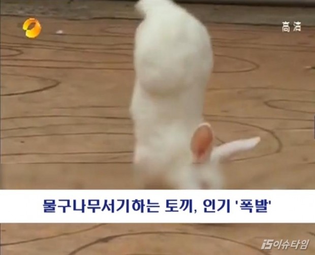 (이슈타임)이지혜 기자=사람도 아닌 네 발로 걷는 동물이 물구나무서기에 성공했다. 중국 광시 자치구에 있는 한 동물원에서 물구나무서기를 하는 토끼가 발견돼 중국에서 화제를 모으고 있다. 22일 CNTV 한국어방송 보도에 따르면 이 토끼 동영상이 인터넷에서 폭발적 인기를 끌면서 광시 동물원에는 들끓는 인파로 몸살을 앓고 있다. 이를 본 한 관광객은 "토끼가 심심찮게 뒷다리를 쳐들고 물구나무서기를 했다"고 말했다. 이에 동물원측은 "시장에서 사들인 평범한 토끼로 어떤 훈련도 받은 일이 없다"면서 "선천적인 능력 같다"라고 전했다. 또 그는 "앞다리로 물구나무서기를 하는데, 뒷다리에 아무런 문제가 없으며, 신체상태도 정상적"이라 밝혔다.