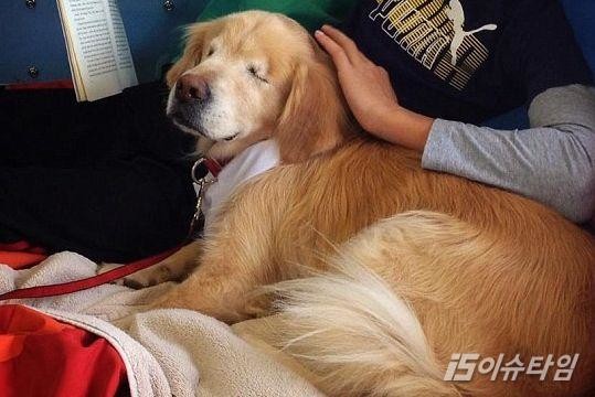 치유견으로 활약중인 앞을 못보는 강아지가 훈훈한 감동을 주고 있다.[사진=데일리메일]