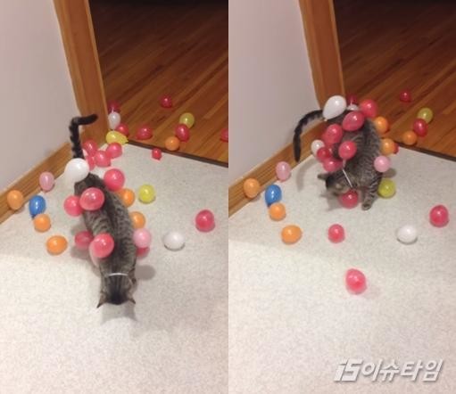 (이슈타임)백재욱 기자=풍선으로 옷을 입을 듯한 고양이의 모습이 누리꾼의 시선을 고정시키고 있다. 지난 30일(현지 시간) 영국 일간 미러는 알록달록한 풍선을 몸에 붙인 채 발장난을 하는 고양이의 모습이 담긴 유튜브 영상을 공개했다. 이 영상을 올린 카라 오스박(kara osbak)은 남편의 생일을 맞아 작은 이벤트를 준비했다. 아침에 남편이 방문을 여는 순간 풍선이 쏟아져 나오도록 방 안 가득 풍선을 넣어놓은 것이다. 하지만 생각지도 못한 해프닝이 벌어졌다. 준비한 풍선이 고양이에게 쏟아지면서 정전기 때문에 고양이의 몸에 색색의 풍선이 달라붙어 버린 것이다. 방 안에 널린 풍선과 장난치느라 몸에 풍선이 붙었는지도 모르는 고양이를 보며 부부는 연신 웃음을 참지 못한다. 졸지에 알록달록한 풍선 옷을 입게 된 고양이의 익살스러운 모습이 담긴 이 영상은 누리꾼들의 눈길을 끌며 화제가 되고 있다.