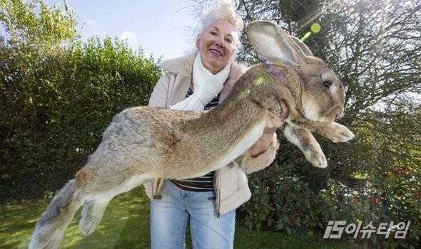 (이슈타임)백재욱 기자=사람 몸집만한 초대형 토끼가 등장해 화제를 모으고 있다. 6일(현지 시간) 익스프레스, 데일리메일 등 외신은 영국 잉글랜드 브롬즈그로브(Bromsgrove)에 사는 세계에서 가장 큰 토끼 다리우스(Darius) 를 소개했다. 보도에 따르면 이 토끼는 몸길이 4.4피트(약 134cm), 무게 49파운드(약 22kg)에 달한다. 웬만한 저학년 초등학생 못지않은 크기다. 다리우스는 이제 거의 다 자란 몸이지만 최근 그에게 위협적인 경쟁자가 나타났다. 바로 다리우스의 아들 제프(Jeff)다. 태어난 지 6개월 된 제프는 몸길이 3.8피트(116cm)로 아빠를 바짝 따라잡고 있다. 두 거대 토끼의 주인인 아네트 에드워드(Annette Edwards.63)는 두 토끼의 밥값으로만 1년에 5000파운드(한화 약 810만원)를 소비한다 고 말했다. 토끼들은 1년에 2000개의 당근과 700개의 사과를 먹어치운다. 하루에 약 5.5개의 당근과 2개의 사과를 먹는 셈이다. 여기에 매일 대형견용 밥그릇에 건초더미를 꽉 채워 먹는다.