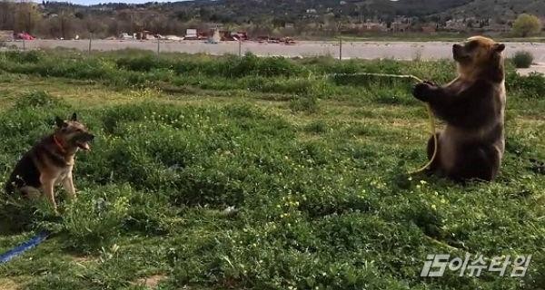 (이슈타임)윤지연 기자=강아지 친구에게 물을 뿌리며 장난치는 곰이 소개돼 화제다. 지난달 31일(현지 시간) 영국 일간 데일리메일은 정원에서 물장난을 치는 강아지와 곰을 소개했다. 영상 속 장난꾸러기 곰의 이름은 티노(Tino)로 스페인의 빌라카릴로(Villacarrillo)에 살고 있다. 개구쟁이인 티노는 물 호스를 쥐고 자신의 얼굴과 정원에 물을 뿌리며 장난을 친다. 그런 티노를 바라보던 독일산 셰퍼드 멍멍이 친구는 티노에게 갑자기 물벼락을 맞는다. 친구의 장난을 이해한다는 듯 멍멍이 친구는 물끄러미 티노를 바라보기만 한다. 더운 날씨에 오히려 시원하다는 표정을 짓는 것처럼 보인다.