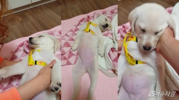 (이슈타임)백재욱 기자=마치 만취한 사람처럼 기절한 강아지 영상이 유튜브에 공개돼 보는 이들에게 웃음을 주고 있다. 지난 16일 한 유튜브 채널에서는 만취, 만취개 선생님 이라며 생애 첫 산책 후 피곤한 나머지 꿀잠에 빠진 귀여운 강아지 영상을 공개했다. 영상 속 주인공인 베리 는 생후 4개월 된 강아지다. 주인은 산책 이후 뻗어버린 베리의 모습이 사랑스러웠는지 코믹한 상황극을 연출해 영상으로 제작했다. 주인은 이불 위에 곱게 누운 베리를 만취한 아저씨 로 설정했다. 그리고 선생님 여기서 주무시면 안 됩니다 를 연발하며 흔들어 깨운다. 베리가 쉽게 깨어나지 않자 몸을 흔들어 일으켜 세우기도 하지만 역시 눈 하나 깜짝하지 않는다. 결국 다리를 쭉 뻗은 채 미동도 안 하는 베리의 모습에 주인은 터져 나오는 웃음을 참지 못한다. 절대 깨지 않는 코믹하고 귀여운 모습에 보는 이의 웃음을 자아냈다. 한편 봐도 또 보고 싶은 이 영상은 현재 온라인 커뮤니티와 소셜네트워크서비스(SNS) 상에 퍼지며 큰 인기를 끌고 있다.
