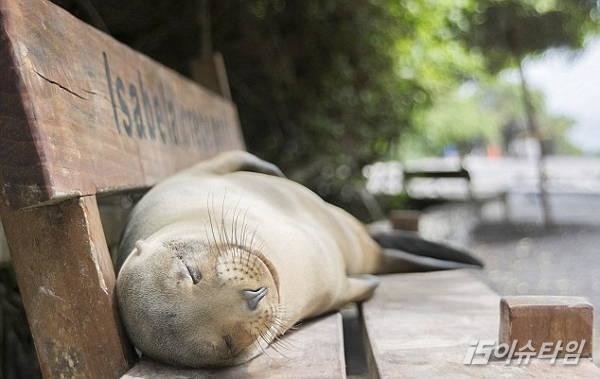 (이슈타임)백민영 기자=영국 일간 데일리메일은 7일(현지시간) 벤치에 누워 낮잠을 자는 바다사자의 사진을 공개했다. 현재 여러 외신을 통해 퍼지면서 큰 화제가 된 바다사자 사진은 야생동물 사진작가 샘 로울리의 작품이었다. 최근 갈라파고스 이사벨라 섬을 여행하던 로울리는 범상치 않은 장면을 보게 된다. 덩치가 큰 바다사자 한마리가 벤치 위에서 느긋하게 낮잠을 자는 모습을 발견한 것이다. 이런 황당한 바다사자의 모습에 로울리는 연신 카메라 셔터를 노르며 바다사자의 행동을 살폈다. 사진을 접한 야생 전문가들은 "매우 놀랍고 황당한 광경이지만 충분히 있을 수 있는 일이다"고 설명했다. 전문가들은 "이사벨라 섬 주변에는 많은 바다사자들이 서식하고 있는데, 영역 다툼에서 밀린 바다사자들이 종종 육지로 올라오는 경우도 있다"고 전했다.