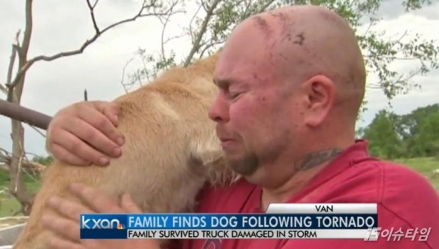 (이슈타임)백민영 기자=토네이도로 인해 차가 뒤집혀 주인과 이별했던 반려견이 주인을 끝까지 기다린 사연이 전해졌다. 지난 13일(현지시간) 폭스8뉴스는 지난 10일 엄청난 토네이도가 미국 텍사스 주를 강타했다고 전했다. 텍사스에 사는 앤디 바우칠런은 가족과 반려견 테이터와 함께 차를 몰고 대피소로 가던 중 토네이도로 인해 차가 전복되는 사고를 당했다. 이 사고로 테이터는 자동차에서 튕겨져 나가 가족들과 생이별을 하게 됐다. 사고현장으로 돌아온 테이터는 가족들이 없어진 것을 깨달았지만 그 자리를 떠나지 않았다. 결국 지난 12일 테이터의 가족들이 그를 찾기 위해 사고 현장으로 찾아왔다. 테이터는 주인을 보자 꼬리를 흔들며 달려갔다. 주인은 테이터를 품에 안으며 "믿고 기다려준 테이터가 너무 고맙다"며 "다치지 않아서 정말 기쁘다"고 눈물을 글썽였다. 테이터의 주인은 이 사고로 얼굴 등을 다친 상태였지만 그 순간만큼은 고통을 잊을만큼 행복했다고 전했다.
