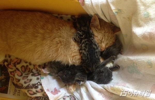 (이슈타임)백재욱 기자=길거리에 버려진 새끼 고양이들을 품에 안아 아빠가 돼 준 가슴 따뜻한 수컷고양이가 등장했다. 지난 17일(현지 시간) ABC뉴스 등 외신은 동물 구호 단체 케치칸 휴먼 소사이어티(Ketchikan Humane Society) 에 구조된 새끼 고양이 6마리의 사연을 소개했다. 지난 8일 이 구호 단체는 위험천만한 도롯가에서 상자에 담겨 버려진 새끼 고양이 6마리를 구조했다. 태어난 지 1주일밖에 되지 않은 새끼 고양이들은 다행히 생명에는 지장이 없었고, 새로운 주인에게 입양되기만을 기다리고 있었다. 하지만 앞서 구조된 8달 된 유기 고양이 헨리(Henry)가 새끼들의 아빠를 자처하고 나섰다. 헨리는 야옹이들이 자기처럼 버려졌다는 것을 알고 있다는 듯이 누가 시키지 않았는데도 살갑게 가슴으로 품었다.