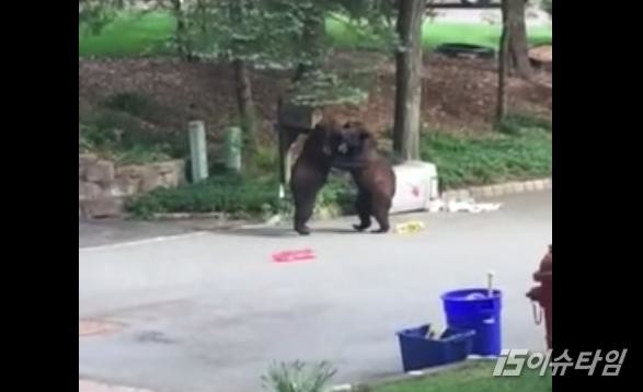 (이슈타임)김미은 기자=미국의 한 마을에서 배가 고파 쓰레기통을 뒤지다 '주먹다짐'을 벌이는 곰 두 마리가 포착돼 눈길을 끈다. 지난 20일(현지 시간) 미국 NBC 방송에 따르면 최근 뉴저지주 몬트빌(Montville)에 사는 트레이시 배드네시(Tracy Bednash)는 키우는 강아지가 갑자기 짖자 밖을 내다보고는 화들짝 놀랐다. 마을 쓰레기통을 뒤지던 거대한 곰 두 마리가 서로를 밀치며 투닥거리고 있었던 것이다. 이들은 맛있는 음식을 발견했다가 자기가 먹겠다며 시비가 붙은 모양이었다.