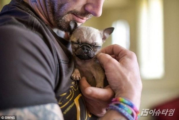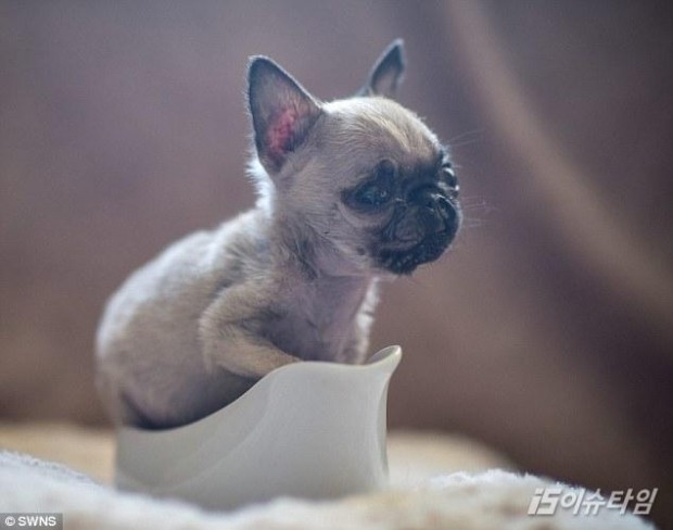 손바닥에 쏙 들어오는 초미니 사이즈의 퍼그가 눈길을 끌고 있다.[사진=데일리메일]