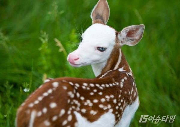 (이슈타임)백민영 기자=하얀 얼굴을 가진 희귀 사슴이 포착돼 눈길을 끄는 중이다. 미국 폭스 뉴스는 지난 1일(현지시간) 미시간 주의 한 사슴 농장 근처에서 발견된 '드래곤'을 소개했다. 아기 사슴 드래곤은 예쁘고 푸른 눈과 분홍색 코 등을 가졌지만 얼굴색이 하얗다는 이유로 어미에게 버림 받았다. 농장 주인 힐러리 포웰은 '농장 옆에 위치한 숲 속에서 애처롭게 울고 있는 드래곤을 발견했다'며 당시의 상황을 설명했다. 덧붙여 '하얀 사슴을 본 건 나도 처음이다'며 '어미는 새끼가 야생에서 생존할 가능성이 낮다고 판단해 버린 것으로 생각된다'고 말했다. 한편 전문가들은 드래곤이 '알비노 증후군'을 앓고 있으며 하얀 피부색 때문에 같은 종족에게 왕따당하기 쉬운 것으로 전했다. 이 때문에 어미에게도 버림 받았다고 추측되는 중이다. 한편 드래곤은 포웰의 농장에서 건강하게 자라는 중이며 어느 정도 성장 후 다른 사슴들과 합류할 것으로 전해졌다.