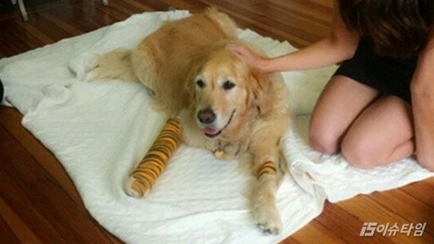 앞발 부러져 피흘리면서도 주인 무사한지 먼저 살펴