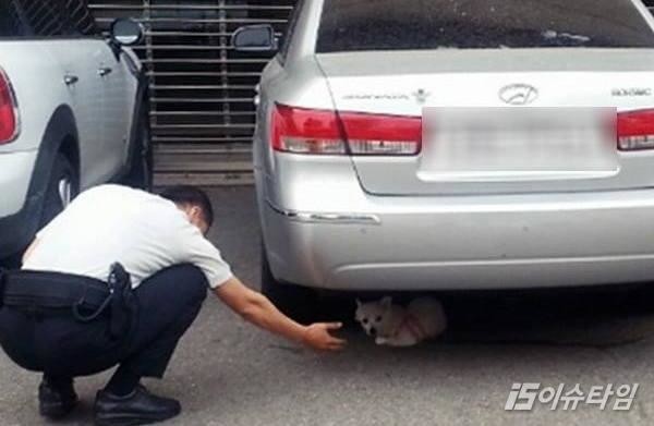 주인을 잃어버리자 8㎞ 되는 주인차량에 돌아가 기다린 반려견이 화제다. [사진=서울경찰 페이스북]