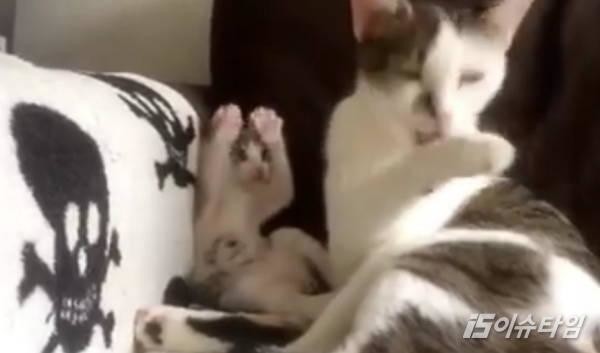 (이슈타임)백민영 기자=엄마의 세수를 따라하는 아기 고양이 영상이 올라와 누리꾼들에게 '아빠미소'를 짓게 만들었다. 지난 22일 '세상에서 가장 귀여운 동물' 페이스북에는 엄마 고양이를 따라하는 아기 고양이의 귀여운 영상이 공개됐다. 공개 영상에는 껌딱지처럼 엄마 옆에 달라붙어 세수를 따라하는 아기 고양이의 모습이 찍혀 있었다. 보다 못한 엄마 고양이가 대신 세수를 시켜주지만 엄마의 품을 벗어나려고 애쓰는 아기 고양이의 모습은 보는 이들로 하여금 웃음을 자아낸다. 이를 접한 누리꾼들은 '이게 졸귀다', '너무 귀여워 심장 폭행 당했다' 등의 반응을 보이는 중이다.