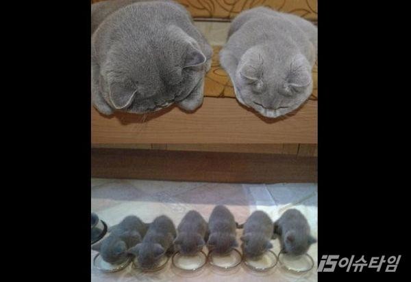 (이슈타임)백민영 기자=6남매 아기 고양이들의 식사 사진이 공개돼 네티즌들의 심장을 공격했다. 지난 1일 한 페이스북 페이지에는 아주 귀여운 고양이 가족의 사진이 한 장 올라왔다. 주인은 아기 고양이 여섯 형제에게 밥을 준 뒤 이 모습을 흐뭇하게 바라보고 있었다. 그런데 주인 외에 또 이 모습을 흐뭇하게 지켜보는 이들이 있었으니 6남매 고양이의 부모들이었다. 뒤쪽에 쪼그려 앉은 채 6남매의 식사를 지켜보는 부모들은 바라만 봐도 배가 부르다는 표정을 하고 있었다. 자신들의 식사도 잊은 채 아기들을 바라보는 고양이 부부의 모습은 지켜보는 이들의 마음까지 따뜻하게 만들었다. 한편 해당 사진은 SNS와 온라인 커뮤니티에 확산돼 누리꾼들에게 즐거움을 선사했다.