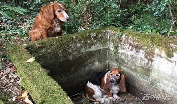 구덩이 빠진 강아지 친구를 기다리는 모습.[사진=Vashon Island Pet Protectors 페이스북]