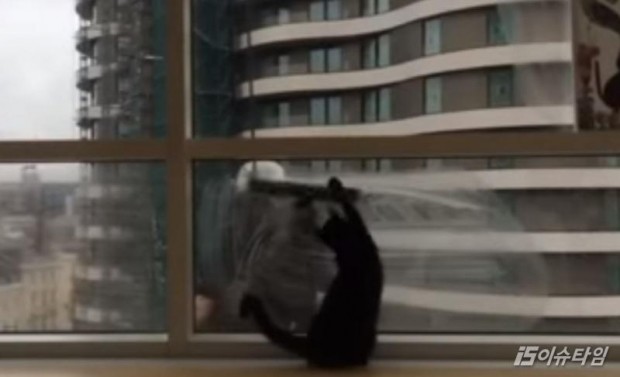 (이슈타임)박혜성 기자=창문 닦는 아저씨를 열심히 쫓아다니는 고양이의 모습이 포착돼 누리꾼들을 미소 짓게 하고 있다. 최근 일본의 한 누리꾼이 유튜브에 올린 이 영상은 고층빌딩 안에 있는 검은 고양이 한마리의 모습을 담고 있다. 고양이는 밖에서 창문을 닦고 있는 남성이 신기한지 청소도구에 손을 갖다 대며 잡으려고 시도한다. 남성도 이 고양이가 귀여웠는지 미소 띈 얼굴로 청소도구로 고양이를 유혹하며 장난을 친다. 고양이는 열심히 점프를 해대며 앞발로 청소도구를 쫓는다. 이내 청소를 마친 남성은 고양이에게 인사를 건내며 아래층으로 내려갔고, 고양이는 아쉬운지 고개를 푹 수구린다. 한편 지난 7일 공개된 이 영상은 15만 건 이상의 조회수를 기록하며 전 세계의 고양이 매니아들에게 큰 인기를 누리고 있다.