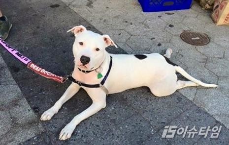 유기견 아스트라가 거리에 앉아 있다. [사진=레드훅보그레스큐]