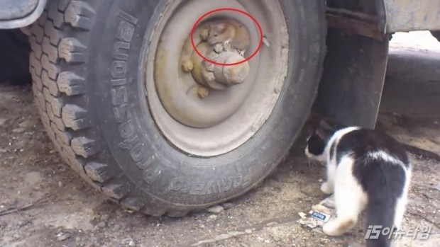 차 바퀴 주위 돌며 쥐 행방 찾지만 눈에 보이지 않아
