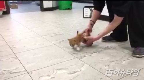 휠체어를 탄 새끼 고양이는 앞다리 이용해 빠르게 이동해
