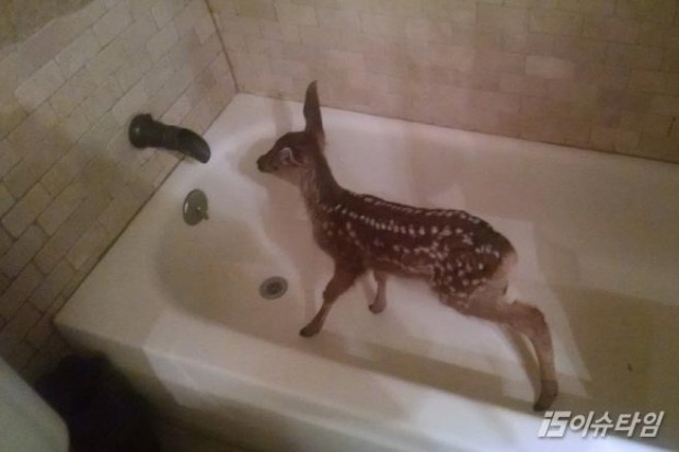 (이슈타임)김현진 기자=최근 온라인에 집 욕실에 아기 사슴이 침입한 사진이 올라오면서 눈길을 끌었다. 17일(현지시간) 미디어매체 버즈피드는 미국 콜로라도에 거주하고 있는 한 경찰관의 쉽게 경험할 수 없는 이야기를 전했다. 지난 14일 오후 콜로라도 에버그린에 위치한 제퍼슨 경찰관의 집 욕조에 갑자기 아기 사슴 한마리가 뛰어들어왔다. 목욕을 할까 고민하고 있었던 재퍼슨은 아기사슴의 갑작스러운 등장에 놀랐다. 그는 혹시나 아기 사슴이 다친건 아닌지 확인 한 후 부모 사슴을 만나길 바라면서 담요로 몸을 감싸 밖으로 되돌려보냈다. 재퍼슨이 욕조에 들어온 아기 사슴의 사진이 온라인에 공개하면서 큰 화제를 불러 일으켰다.