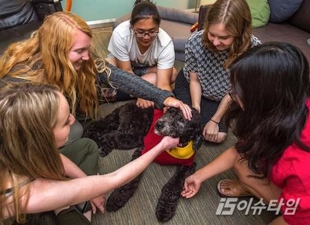 (이슈타임)윤지연 기자=미국의 한 명문대학교에서 정규직 교수가 된 강아지가 알려져 눈길을 끌고 있다. 27일(현지시간) 미국 인사이드에디션은 미국의 한 대학교에 교수로 재직중인 강아지에 대해 보도 했다. 올해 2살이 된 '보르가드 타이어비터'는 캘리포니아주 로스엔젤레스 남부에 있는 명문 사립대 서던캘리포니아 대학교 (USC)에서 교수로 일하고 있다. 학생들이 '뷰 교수님'이라고 부르는 이 강아지는 학생 보건센터에서 일하면서 학생들에게 심리적인 안정을 제공하고 건강한 대학 생활에 도움을 주는 것이다. 뷰는 미국 오레건 주에서 치료견으로 정식 자격증을 취득한 전문 치료견이다. 다른 교수들 처럼 부는 명함과 개인홈페이지, 트위터 계정도 있다. 명예직 교수 명단에 이름도 올렸다. 주5일 근무를 하지만 보수는 따로 받지 않는 것으로 알려졌다. 귀여운 외모에 다정한 성격으로 학생들 사이에서 단숨에 인기 교수가 된 뷰의 사무실에는 매일 학생들의 발걸음이 끊이질 않아 문전성시를 이루고 있다. 뷰는 USC 대학 내 곳곳을 돌아다니며 자신의 임무를 다하고 있다. 학내 소식지 'USC뉴스'는 강아지가 교수로 채용된 건 이번이 처음 있는 일이라고 밝혔다. 학내 보건센터 국장인 스윈포드 씨는 '캠퍼스 문화에 더 나은 변화를 추구한다'고 말했다.