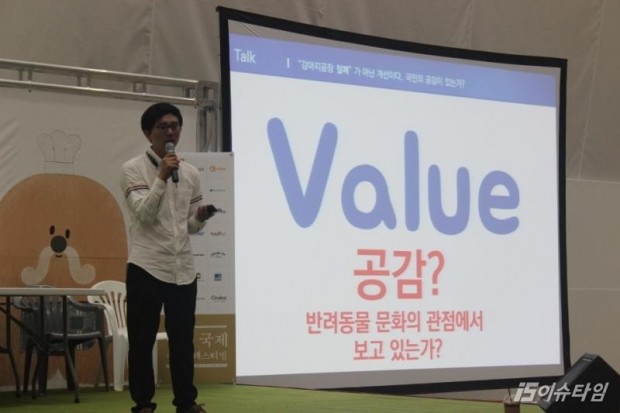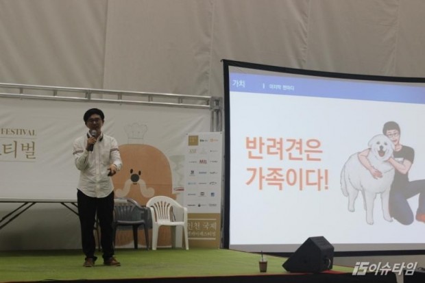 (이슈타임)이갑수 기자=인천 송도 컨벤시아에서 진행 중인 '2016 인천 국제 펫케어 페스티벌' 셋째날에는 반려동물 문화에 대해 허심탄회한 대화를 나누는 특별한 시간이 마련됐다. 국내 대표 온라인 반려견 카페인 다음 '강사모'(강아지를 사랑하는 모임)의 최경선 대표는 '반려동물 문화를 말한다' 라는 주제로 토크 콘서트를 진행했다. 그는 촉망받는 IT 기업 직원으로 일하다 펫샵을 운영하면서 '개장사', '개백정' 등의 오명을 쓰기도 했던 자신의 이야기를 소개하며, 국내 대표 반려견 카페의 대표로서 느끼는 국내 반려동물 문화에 대해 솔직하게 털어놨다. 아울러 '강아지 공장', '유기견' 등 동물과 관련된 다양한 사회적 이슈에 대해서도 자신의 견해를 드러냈다. '