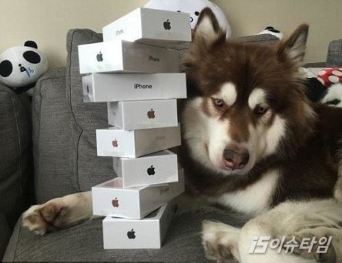 중국에서 한 남성이 자신의 반려견에게 아이폰7 8대를 사줬다.[사진=온라인 커뮤니티]