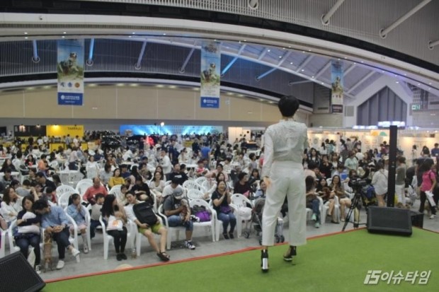 2016 인천 국제 펫케어 페스티벌의 특별 이벤트 '김미려를 이겨라! 도전 고'스톱'이 폭발적인 반응 속에 진행됐다.[사진=이진주 기자]