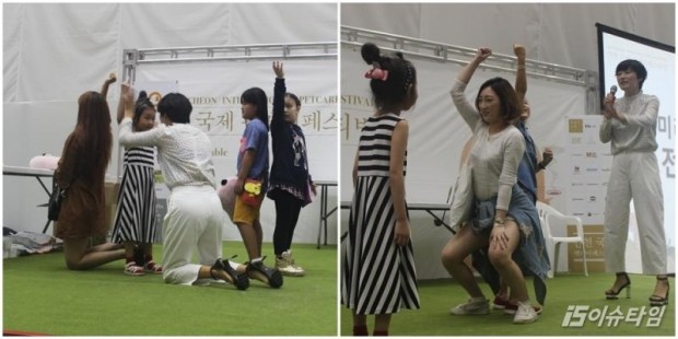 (이슈타임)이진주 기자=2016 인천 국제 펫케어 페스티벌 셋째날의 깜짝 이벤트 '김미려를 이겨라! 도전 고'스톱'이 폭발적인 반응 속에 성공적으로 진행됐다. '김미려를 이겨라! 도전 고'스톱'은 개그우먼 김미려와의 가위바위보 대결을 통해 푸짐한 경품을 받을 수 있는 프로그램이다. 4등을 할 경우 샘플 사료를 받을 수 있으며, 3등은 반려동물 실종을 방지하는 목걸이형 스마트 인식표 '펫쯩', 2등은 강쥐님 수라상 1만원권 상품권, 대망의 1등에게는 그랜파피 인형이 주어진다. 이 밖에도 정품 사료 한 포대 등 푸짐한 경품이 쏟아졌다. 김미려씨가 무대 위로 올라오자 자유롭게 부스를 둘러보며 패스티벌을 즐기던 관객들은 순식간에 무대 근처로 몰려들었다. '도전 고'스톱'에는 전국 각 지역뿐만 아니라 중국 베이징에서 온 중국인 관광객까지 다양한 관객들이 참여해 무대를 뜨겁게 달궜다. 특히 김미려씨는 커다란 반려견과도 가위바위보 대결을 시도해 객석을 웃음바다로 만들었다. 아울러 1등 상품이 그랜파피 인형이다 보니 어린이 참가자들이 눈에 띄게 많이 보이기도 했다. '