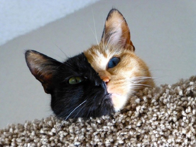 최근 온라인에는 얼굴의 절반은 검은색 남은 절반은 오렌지 색을 가진 고양이 '비너스'의 사진이 눈길을 끌고 있다.