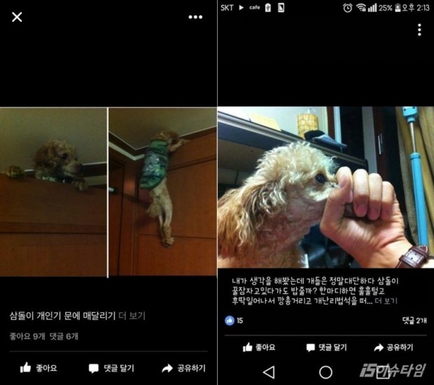 김씨는 과거 자신의 페이스북에 반려견 삼돌이를 학대하는 사진을 올렸다.[사진=김근명 SNS]