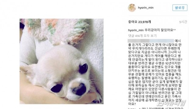 민효린이 반려견이 자주 바뀐다는 의혹에 직접 해명하고 나섰다.[사진=민효린 SNS]