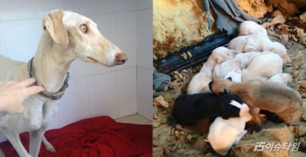 (이슈타임)정현성 기자=다친 다리를 이끌고 새끼 10마리를 돌본 유기견의 사연이 전해져 감동을 주고 있다. 지난달 16일 스페인 남부의 한 마을에서 다리를 다친 유기견과 새끼 강아지 10마리가 구조되는 영상이 공개됐다. 동물전문매체 더 도도와 보어드판다 등에 따르면 유기견 '베라'가 먹을 것을 먹지 못해 마른 상태로 먹을 것을 찾다가 발견됐다. 발견 당시 베라는 차에 치인 듯 다리 골절상을 입은 상태였다. 베라를 진찰한 수의사 엘렌 소브리 씨는 베라의 몸에서 모유가 나오는 것을 보고 새끼를 낳은지 얼마 안 됐을 것으로 추정했다.' 그는 치료를 마친 뒤 베라에게 목줄을 채운 다음 구조된 장소로 데려갔다. 그러자 베라는 3㎞를 걸어 한 폐건물에 버려진 폐차 앞에 섰다. 차 안에는 베라의 새끼 10마리가 있었다. 소브리는 베라와 새끼 10마리를 모두 구조해냈다. 그는 영상을 통해 '현재 베라와 강아지들은 안전하다'고 밝혔다. '