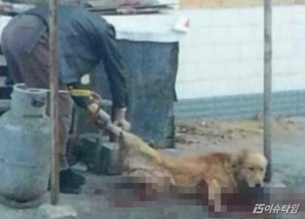 (이슈타임)김미은 기자=중국에서 산채로 개의 가죽을 벗기는 사진이 공개돼 논란이 일었다. 지난 6일(현지시간) 온라인 미디어 더 커버리지는 중국인들이 살아 있는 강아지의 가죽을 벗기고 있다고 밝히며 사진을 공개했다. 공개된 사진 속에는 아직 살아 있는 것으로 보이는 강아지가 사람에게 붙잡혀 도축 당하고 있는 잔인한 모습이 담겼다. 의식이 있는 상태에서 가죽을 벗길 경우 강아지는 극심한 고통을 겪다 쇼크로 목숨을 잃는다. 온라인을 통해 해당 사진이 공개되자 잔혹한 '동물 학대'라는 비난이 이어졌다. 하지만 현재 중국에는 강아지를 비롯한 동물 도축에 관한 법률이나 처벌 조항이 없어 많은 사람들의 사회적 논의가 시급하다. '