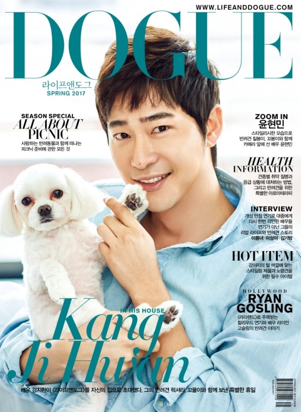 강지환이 반려견들과 함께 펫 매거진 <라이프앤도그< 표지를 장식했다.[사진=라이프앤도그]