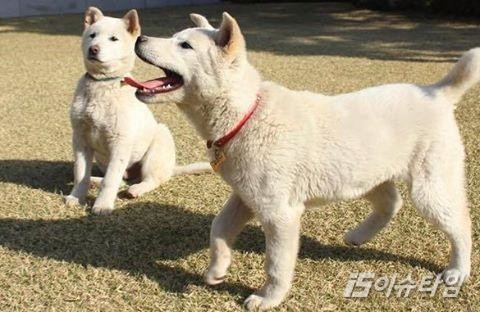 박근혜 전 대통령이 청와대에 두고 간 진돗개에 대해 동물보호단체가 입양 의사를 밝혔다.[사진=청와대 SNS]