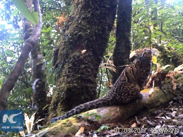 중국의 한 자연보호구역에서 마블고양이의 모습이 포착됐다.[사진=New China TV Youtube 캡쳐]